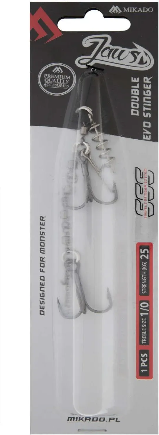 Profesjonalna dozbrojka spinningowa Jaws Evo Stinger XL zaprojektowana z myślą o łowieniu dużych drapieżników na większe przynęty gumowe. Konstrukcja oparta na systemie krętlików znacząco ogranicza skręcanie zestawu i poprawia naturalną pracę przynęty, nawet przy agresywnym prowadzeniu.