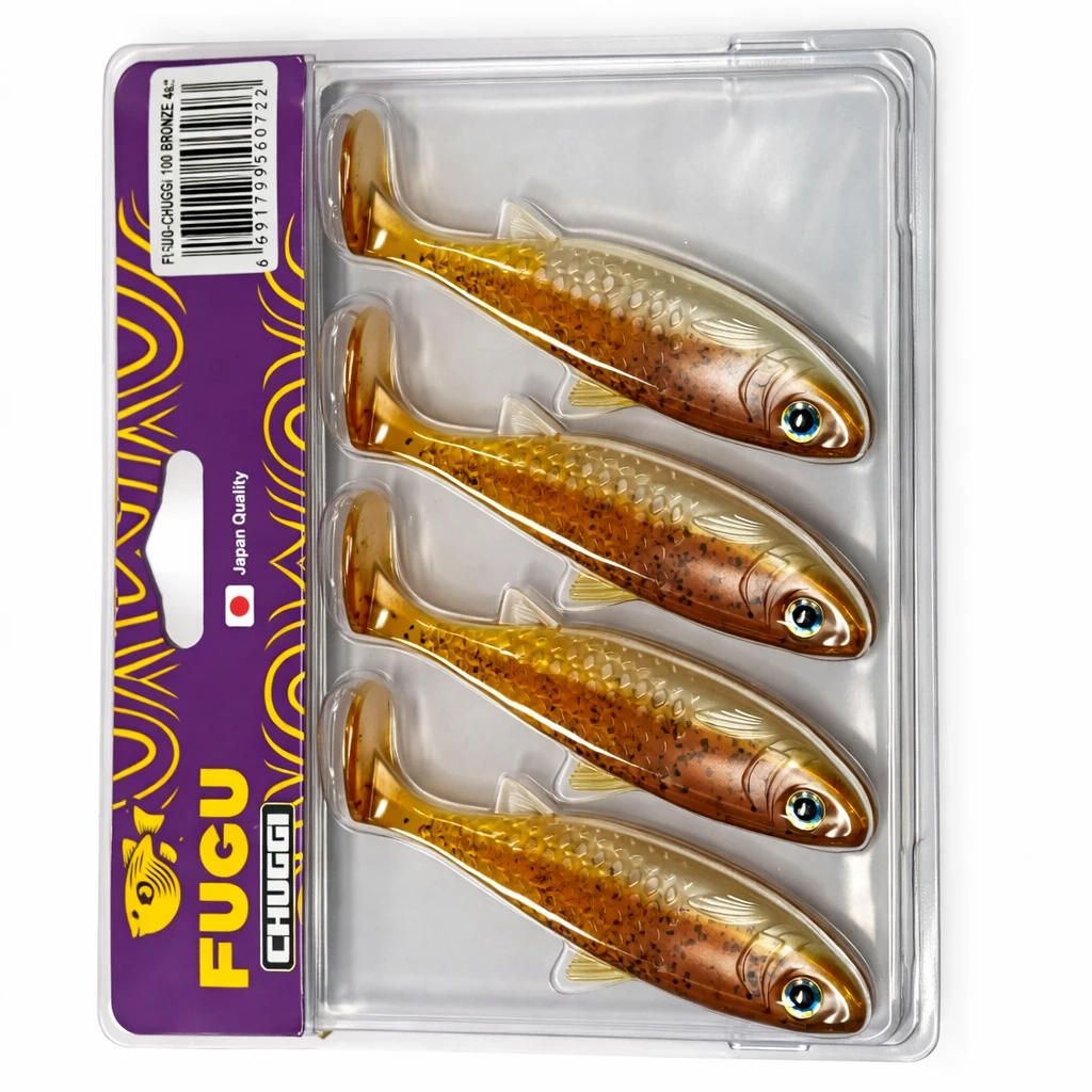 Guma spinningowa FUGU CHUGGI 100 w kolorze Brown Sugar to niezwykle realistyczna imitacja drobnej ryby spokojnego żeru. Naturalny, herbaciano-brązowy grzbiet przechodzący w półtransparentny brzuch z brokatem idealnie odwzorowuje ukleję, płoć i małe karpiowate — czyli podstawowy pokarm drapieżników w większości łowisk.