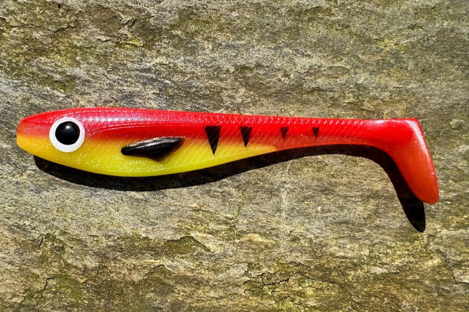 Kolor Red Tiger to kontrastowe, agresywne malowanie w pasy, które doskonale sprawdza się w mętnej wodzie, przy zachmurzeniu oraz podczas połowu o świcie i zmierzchu — czyli wtedy, gdy drapieżniki polują najaktywniej.