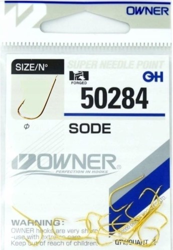 Najwyższej jakości, bardzo ostre, Japońskie haczyki Owner 50284 Sode w kolorze złotym, dedykowane do łowienia na kukurydzę białych ryb metodą spławikową i gruntową.