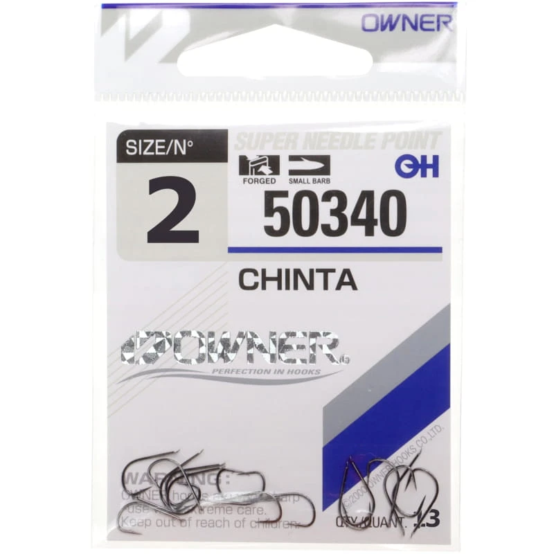 Haczyki Owner CHINTA 50340 w rozmiarze 2 to wysokiej jakości haczyki z łopatką, przeznaczone do łowienia metodą spławikową i gruntową. Model ten jest bardzo popularny wśród wędkarzy łowiących większe ryby spokojnego żeru.