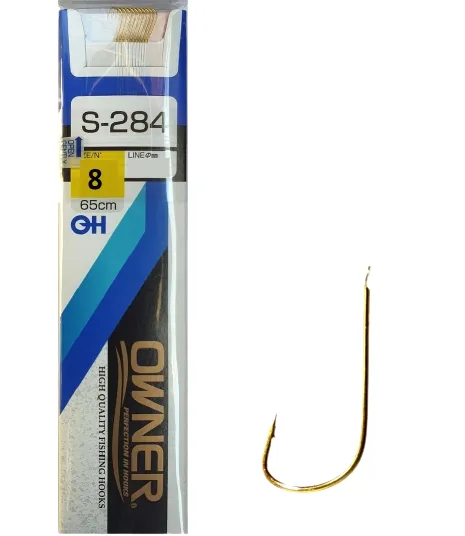 Gotowe przypony z haczykami japońskiej marki Owner — model S-284 w rozmiarze 14 to klasyczne zestawy haczyk + fabrycznie dowiązany przypon, stworzone głównie do lekkich i średnich zestawów spławikowych oraz gruntowych, szczególnie tam, gdzie liczy się naturalna prezentacja przynęty i delikatne zacięcie.
