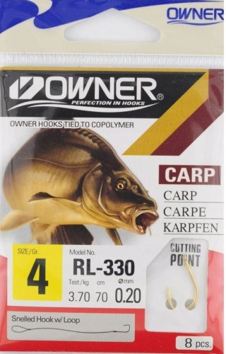 Gotowe przypony z haczykami japońskiej marki Owner — model RL-330 w rozmiarze 2 to mocniejszy haczyk z fabrycznie dowiązanym przyponem, przeznaczony do połowów, gdzie potrzebna jest większa wytrzymałość przy jednocześnie delikatnej prezentacji przynęty.
