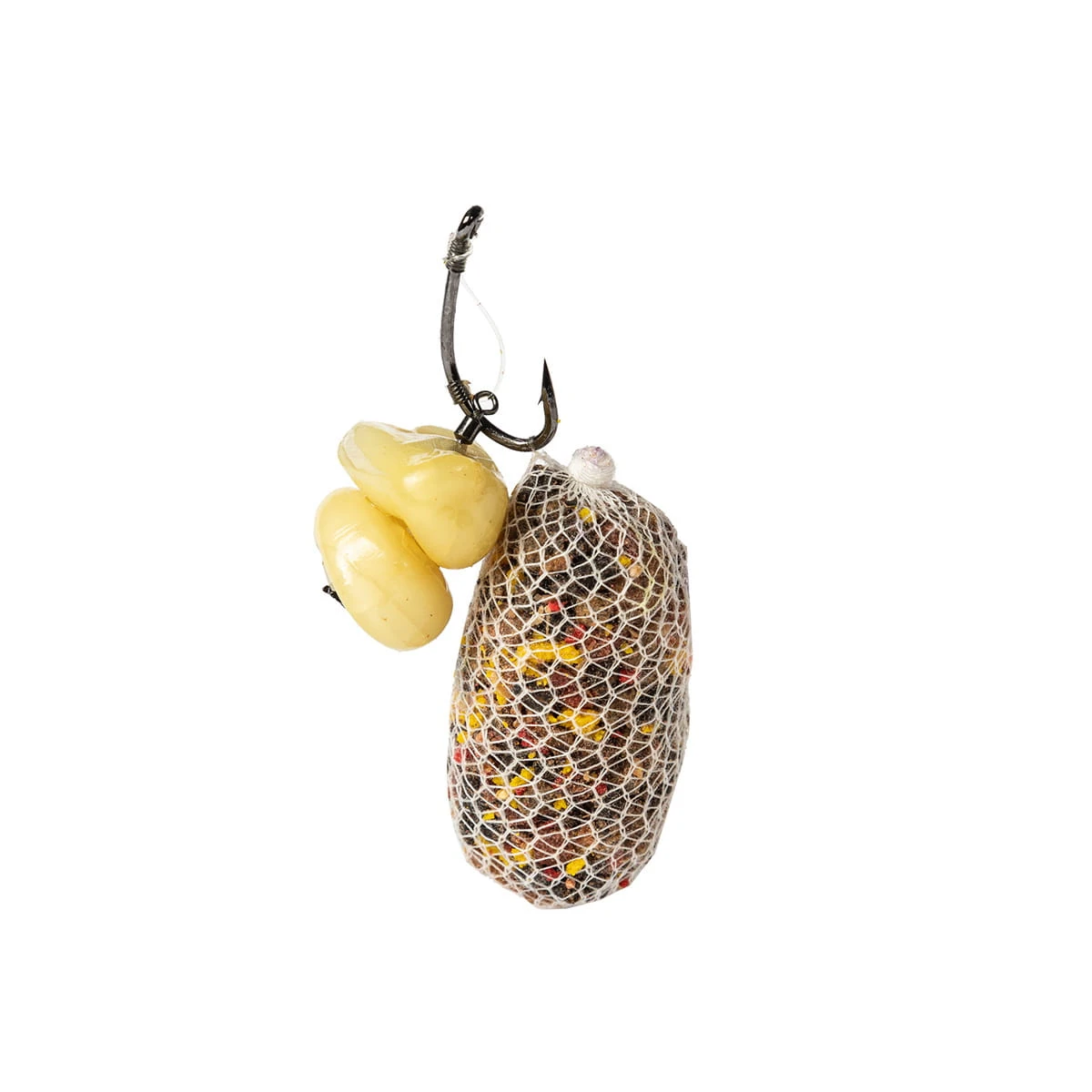 Ziarna haczykowe Kukurydza Gigant jest doskonałym sposobem na przyciągnięcie ostrożnej ryby. Ziarna te mają intensywny smak i aromat, który wabi karpie już z daleka. Właściwości ziarna haczykowego kukurydzy gigant jako przynęty są niezwykle popularne wśród wędkarzy, ponieważ sprawdzają się nawet wtedy, kiedy ryby słabo żerują i nie chcą pobierać kulek proteinowych. Wystarczy nałożyć na włos dwa - trzy ziarna kukurydzy gigant i czekać na branie. Można też podbić ziarna naszym haczykowym orzechem tygrysim lub kulką typu pop-up.