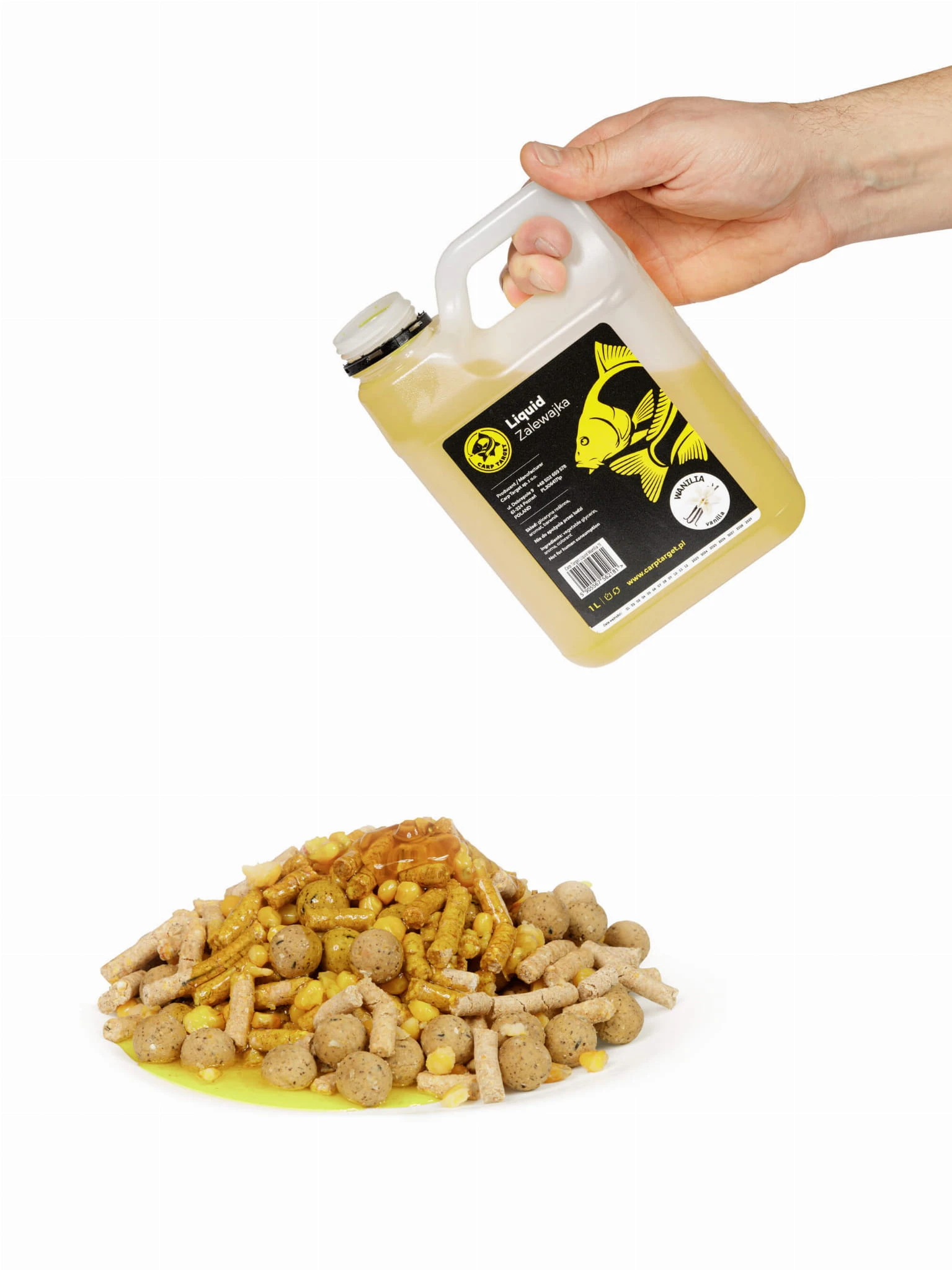 Liquid wędkarski 1l wanilia wyróżnia się przede wszystkim swoją unikalną bazą z słodkiej gliceryny. Ta wyjątkowa substancja zapewnia idealną konsystencję, która ułatwia aplikację na różne rodzaje przynęt. Niezależnie od tego, czy używasz kulek proteinowych, pelletów, kukurydzy, czy innych przynęt, liquid PVA 1l wanilia doskonale się sprawdzi dzięki swojej uniwersalności. Jego formuła umożliwia równomierne rozprowadzenie na przynęcie, co zwiększa jego skuteczność. Konsystencja liquidu jest na tyle gęsta, że nie rozpuszcza woreczków PVA. Pozwala to na precyzyjne dozowanie bez ryzyka rozpuszczenia opakowania przynęty. Wysoka koncentracja aromatu sprawia, że nawet niewielka ilość produktu jest w stanie znacząco zwiększyć atrakcyjność przynęty. Nasz liquid wędkarski 1l wanilia jest więc nie tylko skuteczny, ale także ekonomiczny.