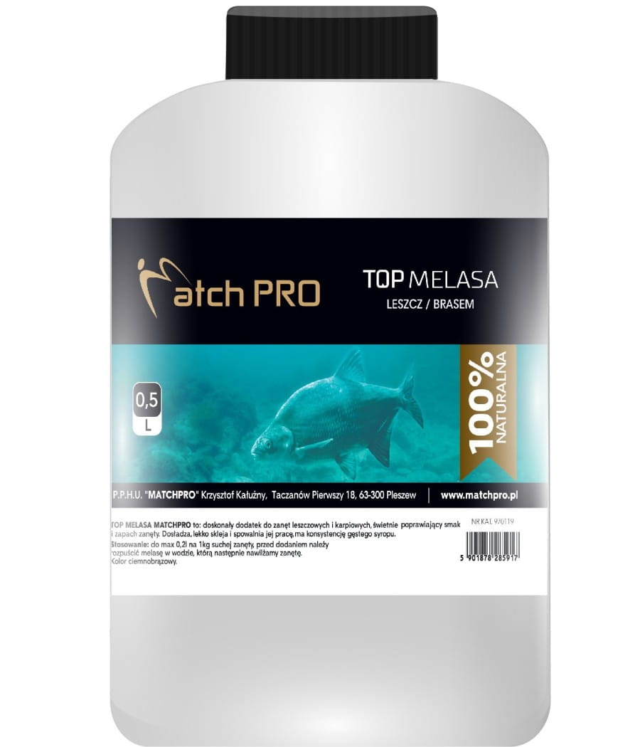 Melasa MatchPro TOP Leszcz Brasem o pojemności 500 ml to wysokiej jakości płynny dodatek do zanęt przeznaczony głównie do połowu leszczy oraz karpi. Dzięki gęstej, syropowej konsystencji doskonale miesza się z zanętą, zwiększając jej atrakcyjność zapachową i smakową.
