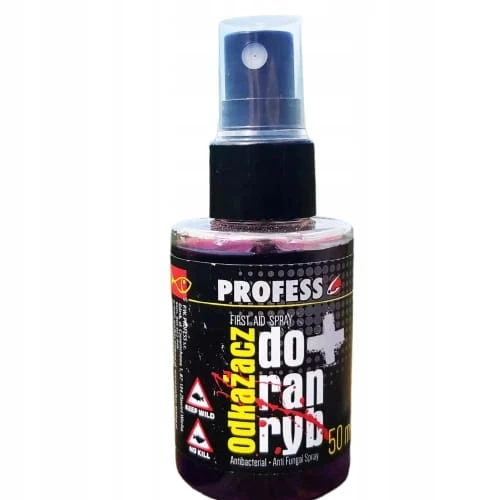 Odkażacz do ran ryb Profess 50ml to specjalistyczny preparat przeznaczony do dezynfekcji ran pohaczykowych, otarć i uszkodzeń skóry ryb. Zapobiega infekcjom oraz przyspiesza proces gojenia, zwiększając szanse ryby na przeżycie po wypuszczeniu do wody.