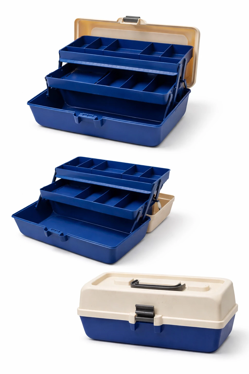 Skrzynka została wyposażona w dwie wysuwane szuflady z przegródkami, które umożliwiają wygodne przechowywanie przynęt, haczyków, ciężarków i innych drobiazgów.