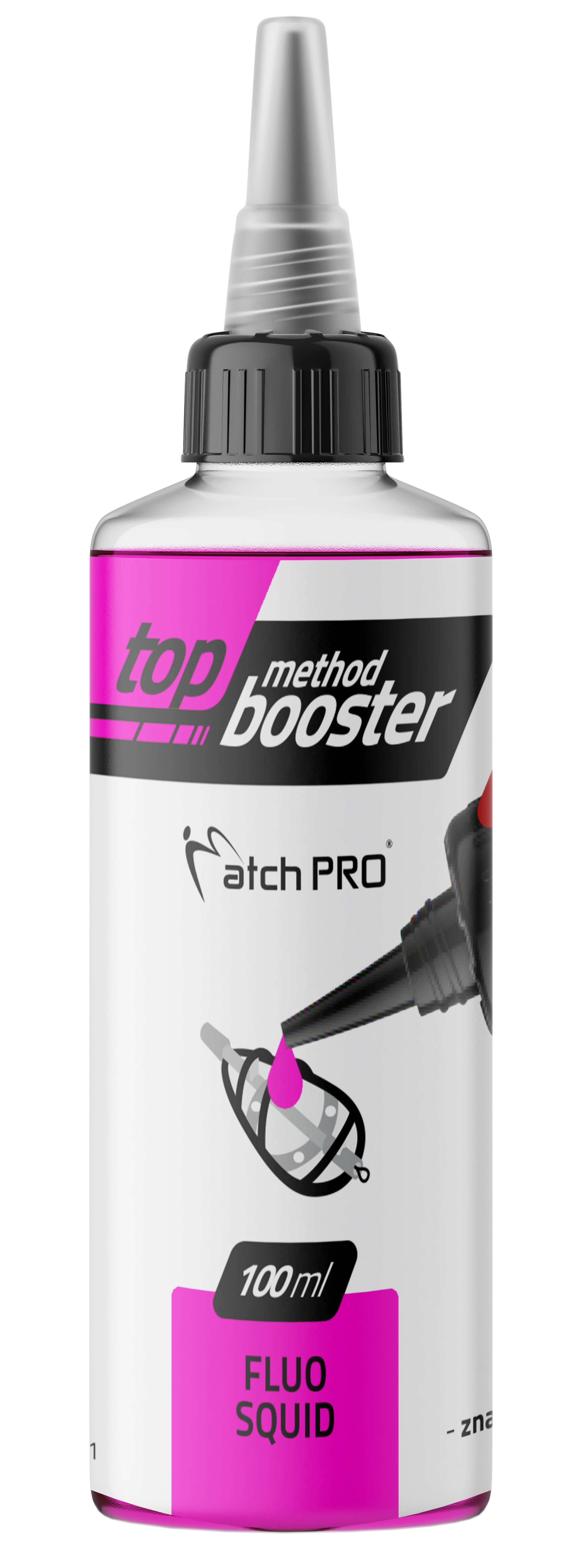 Top Method Booster Fluo Squid MatchPro 100ml to wysokiej jakości booster opracowany przez zawodników method feeder. Charakteryzuje się bardzo mocnym, rybnym aromatem kałamarnicy oraz dodatkowym efektem wizualnym (fluo), który zwiększa zainteresowanie ryb w łowisku.