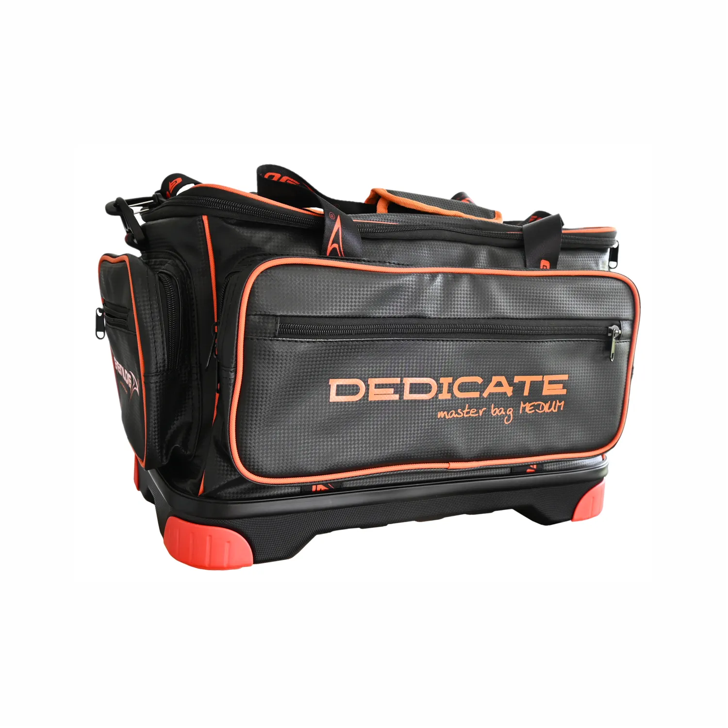 Jedną z najważniejszych cech modelu jest twarde dno wykonane z materiału ABS, które gwarantuje stabilność torby i zabezpiecza jej zawartość przed wilgocią oraz uszkodzeniami mechanicznymi. Torba została wyposażona w pojemną komorę główną oraz praktyczne kieszenie boczne, które umożliwiają wygodną organizację akcesoriów wędkarskich.