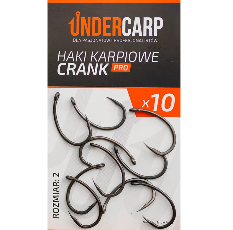Haczyki karpiowe Undercarp Crank 2 PRO w rozmiarze 2 to jeden z najbardziej agresywnych modeli w ofercie marki, zaprojektowany z myślą o maksymalnej skuteczności zacięcia. Charakterystyczny szeroki łuk kolankowy oraz odgięty grot z mikrozadziorem sprawiają, że haczyk bardzo szybko obraca się w pysku ryby i pewnie wbija w dolną wargę.