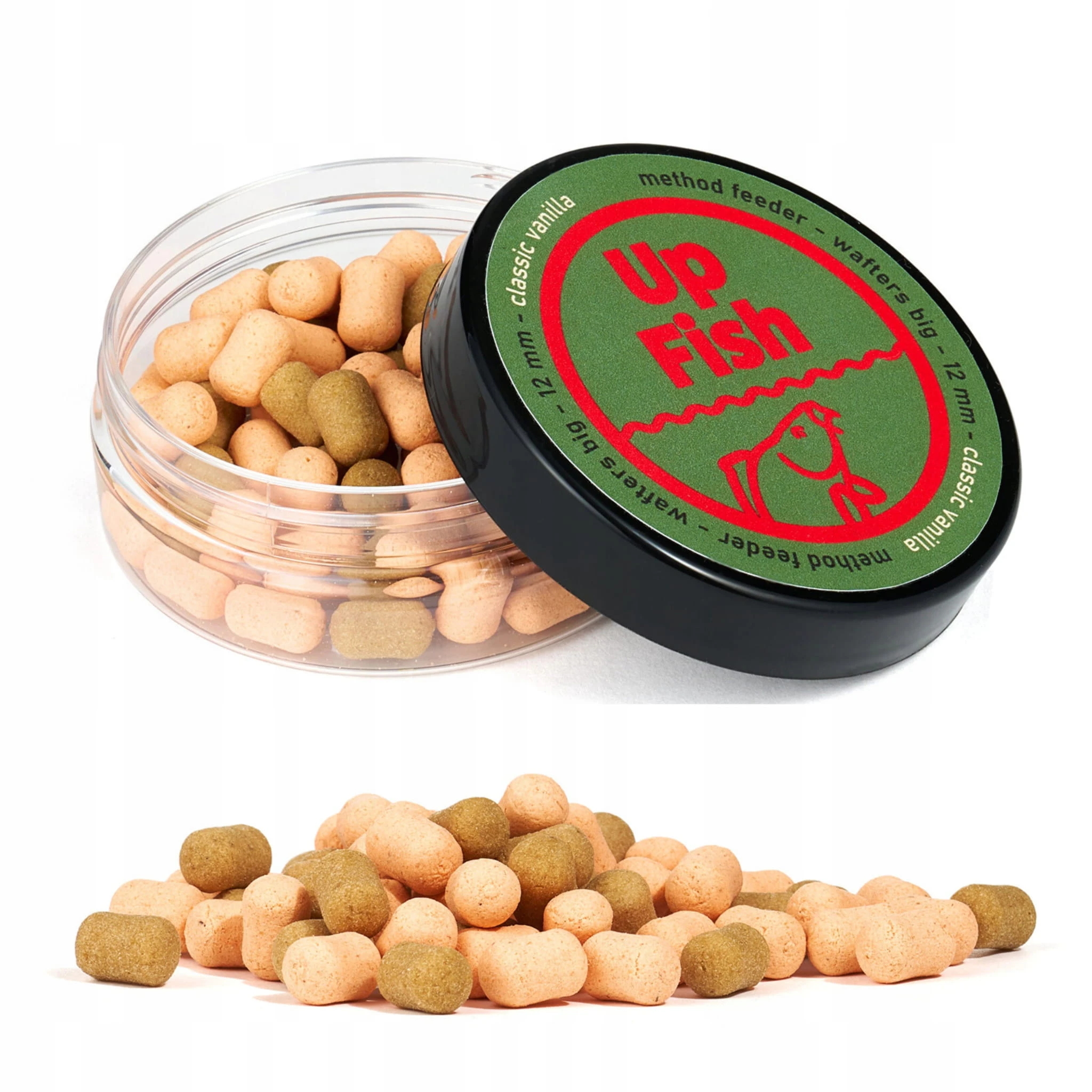 Up Fish Classic Vanilla 12 mm to słodkie waftersy o przyjemnym, wyraźnym aromacie wanilii, stworzone z myślą o skutecznym łowieniu metodą method feeder. Stonowana kolorystyka – bladopomarańczowa oraz brązowa – doskonale komponuje się z dnem, nie wzbudzając podejrzeń ostrożnych ryb.