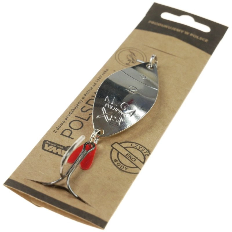 Klasyczna wahadłówka spinningowa w uniwersalnym rozmiarze, przeznaczona do połowu drapieżników w wodach stojących i wolno płynących. Niklowane wykończenie generuje mocne, chłodne refleksy świetlne dobrze widoczne w czystej i lekko przydymionej wodzie, skutecznie zwracając uwagę ryb z większej odległości.
