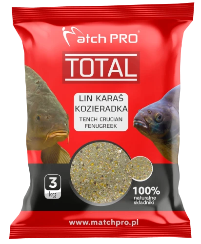 Zanęta MatchPro Total Lin Karaś Kozieradka 1 kg to mieszanka stworzona typowo pod liny i karasie, ale sprawdza się też na inne ryby karpiowate.