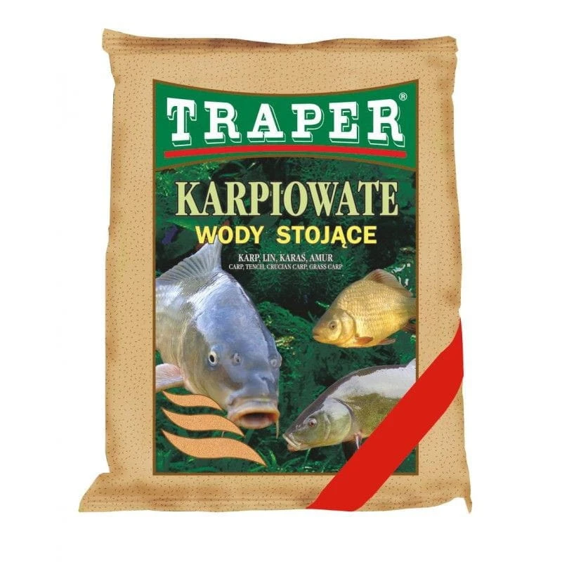 Zanęta Traper Karpiowate – Wody Stojące to uniwersalna mieszanka przeznaczona do połowu ryb spokojnego żeru w jeziorach, stawach i innych wodach bez uciągu.