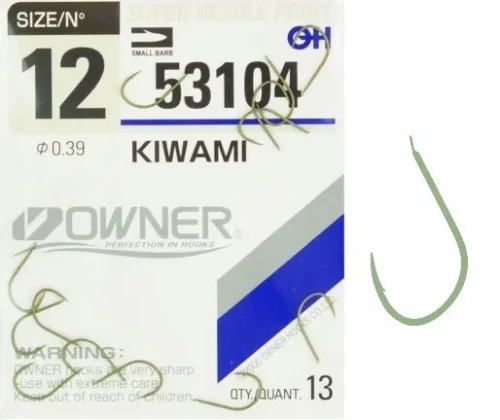 Haczyki Owner KIWAMI 53104 w rozmiarze 12 to wysokiej jakości model przeznaczony do łowienia spławikowego i gruntowego. Dzięki klasycznej konstrukcji z łopatką oraz bardzo ostremu grotowi zapewniają skuteczne zacięcie nawet przy delikatnych braniach.