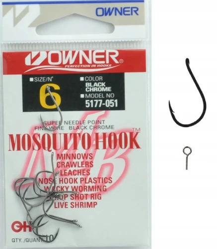 Haczyk Owner Mosquito Hook w rozmiarze #6 to wysokiej jakości, lekki i bardzo ostry haczyk przeznaczony do precyzyjnych technik połowu. Model ten cieszy się dużą popularnością wśród wędkarzy spinningowych oraz stosujących finezyjne metody łowienia.